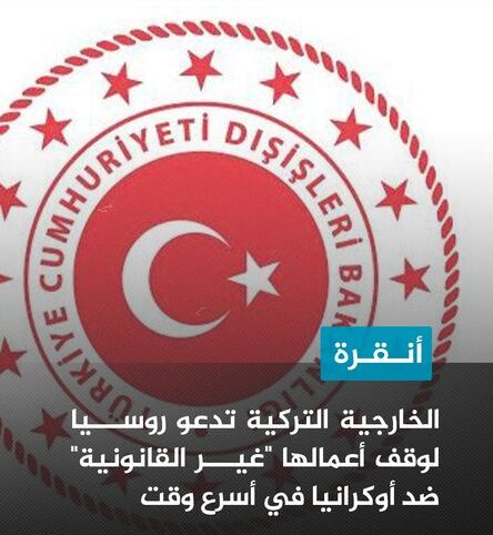 ودعت الخارجية التركية في بيان، روسيا إلى وقف أعمالها “غير القانونية” ضد أوكرانيا في أقرب وقت.