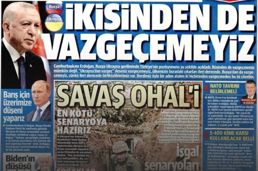 عنونت صحف صباح، يني شفق، أكشام، ويني برلك تصريح الرئيس التركي الذي قال “لا يمكننا التخلي عن روسيا وأوكرانيا”
