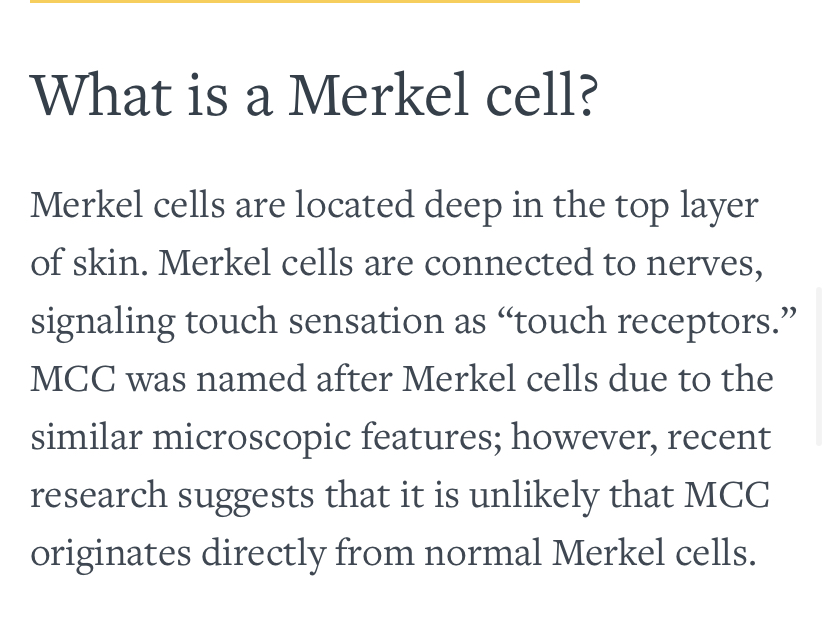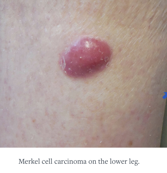 يساهم فيروس اكتشف حديثا يطلق عليه فيروس خلية ميركل التورامي بشكل مرجح في تطوير غالبية سرطان خلايا ميركل. كما تشير الدراسات ايضا في أن العدوى كانت موجودة في الخلية قبل أن تصبح سرطانية.