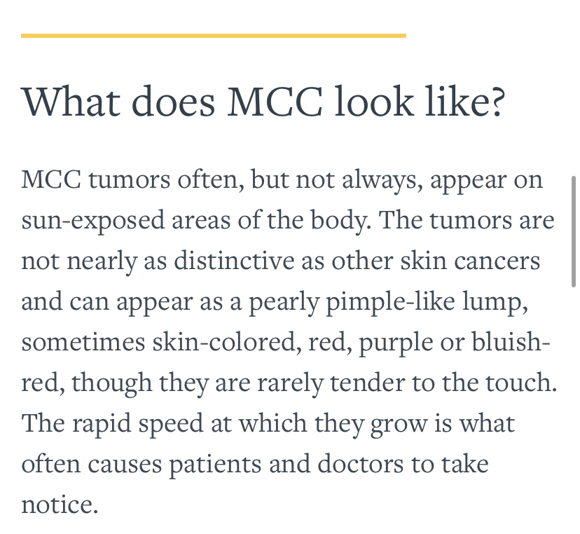 أن سرطان خلايا ميركل قد يكون له أسباب أخرى أيضا. ومن غير المعروف ما إذا كانت هذه الطفرات ناتجة عن التعرض للشمس. يحدث سرطان خلايا ميركل أيضا بشكل متكرر أكثر في المرضى الذين يعانون من ضعف جهاز المناعة، او المصابين بمرضى الإيدز، وعند كبار السن.