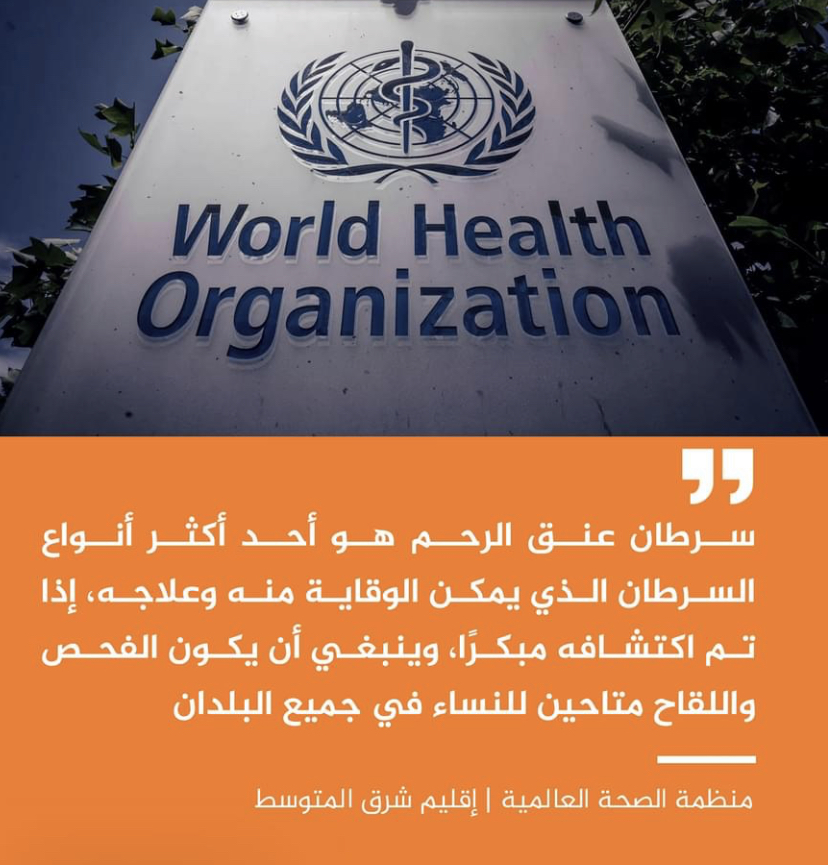 يأتي سرطان عنق الرحم في المرتبة السادسة من بين أكثر أمراض السرطان شيوعًا في صفوف النساء في إقليم منظمة الصحة العالمية لشرق المتوسط