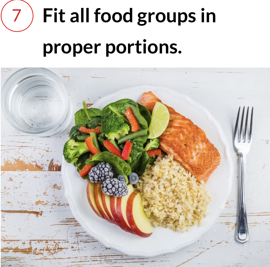 ضع كل المجموعات الغذائية في حصص مناسبة.